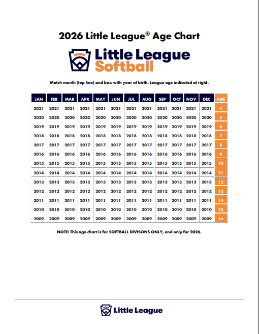2026 LITTLE LEAGUE SOFTBALL AGE CHART